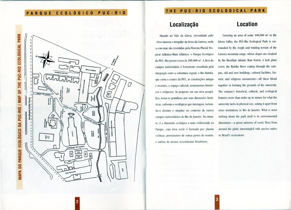 Parque Ecológico da PUC-Rio - Guia de visitantes. Bilíngue. Mapa do campus e Localização na cidade.