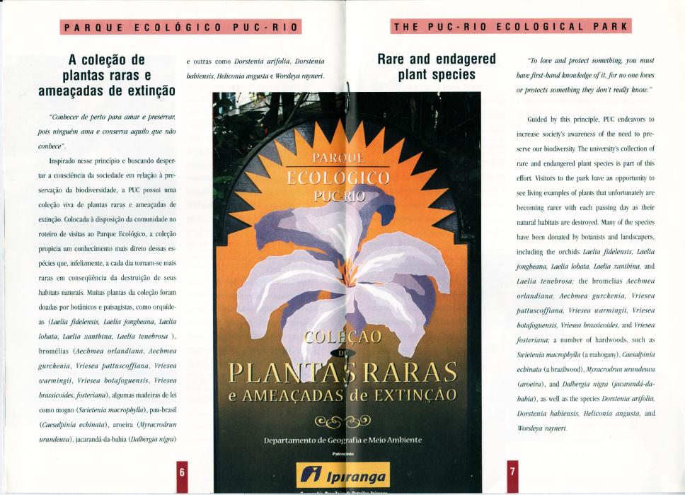 Parque Ecológico da PUC-Rio - Guia de visitantes. Bilíngue. A coleção de plantas raras e ameaçadas de extinção. Ilustração.