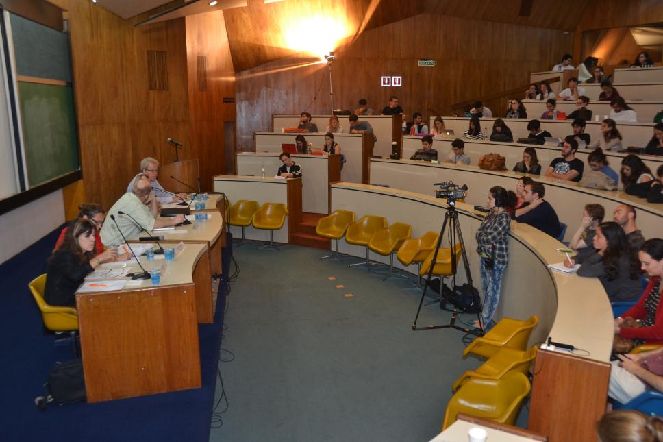 Na mesa, da esquerda para a direita: Miriam Saraiva (UERJ), Claudia Fuentes (IRI), Kai Michael Kenkel (IRI), Rafael Villa (USP) e Bert Hoffman (GIGA).