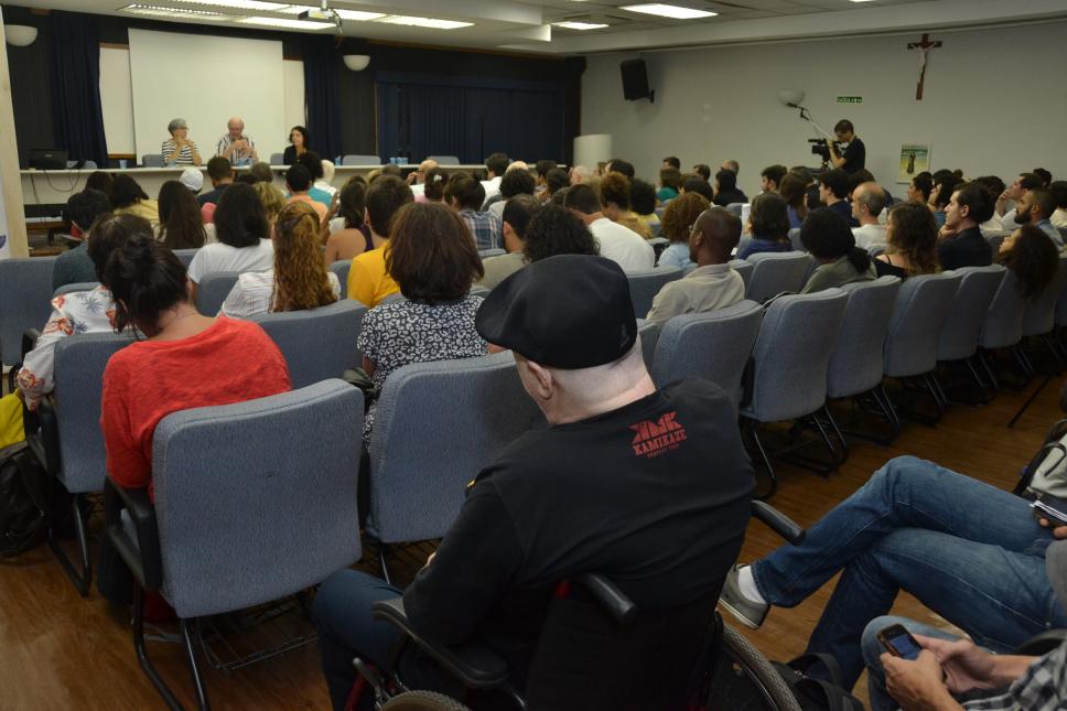 O prof. Sílvio Tendler acompanha a palestra 30 anos da Nova República.