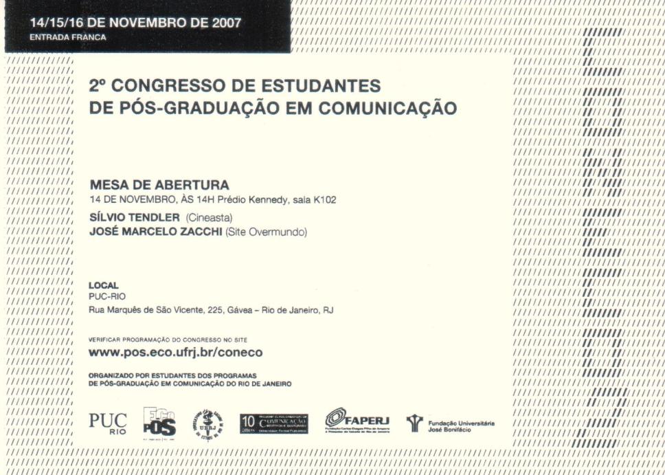 Folder anunciando o 2° Congresso de Estudantes de Pós-graduação em Comunicação, em novembro de 2007, a ser realizado na PUC-Rio.