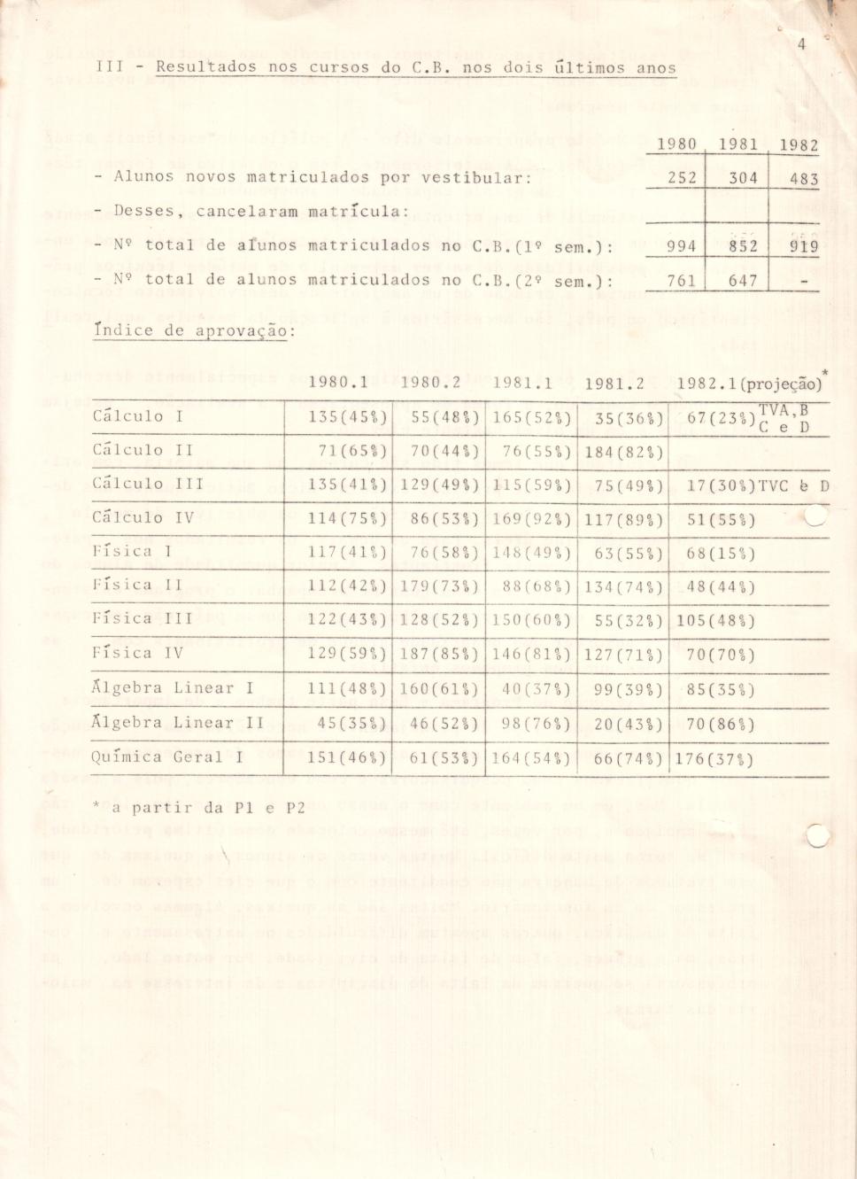 Diretrizes Acadêmicas para 1983/1984 Centro Técnico Científico cont.,, comuma tabela com o indíce de aprovação dos anos de 1980, 1981 e 1982.1