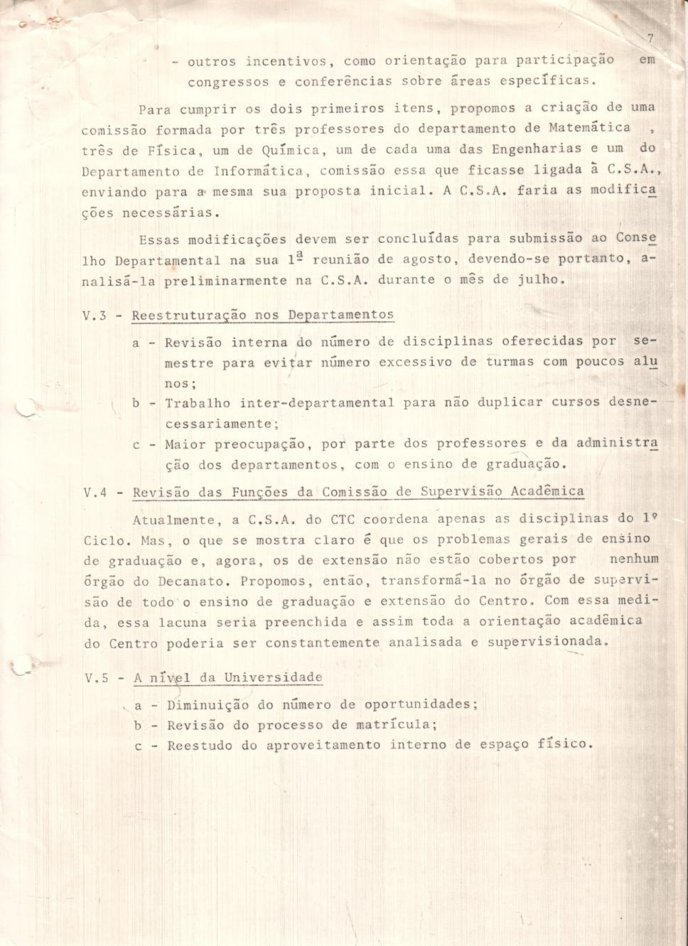 Diretrizes Acadêmicas para 1983/1984 Centro Técnico Científico. Reestruturação nos departamentos. Revisão das funções da Comissão de Supervisão Acadêmica.