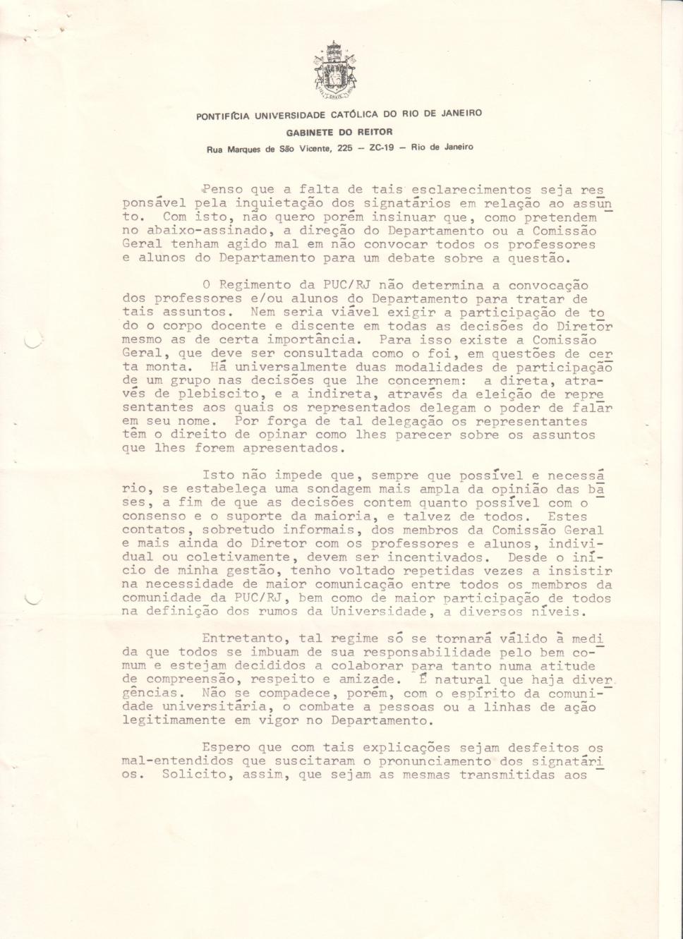Carta do Reitor pe. João A. Mac Dowell S.J. ao Departamento de Matemática, apontando alguns problemas da Pós-Graduação, Página 2.