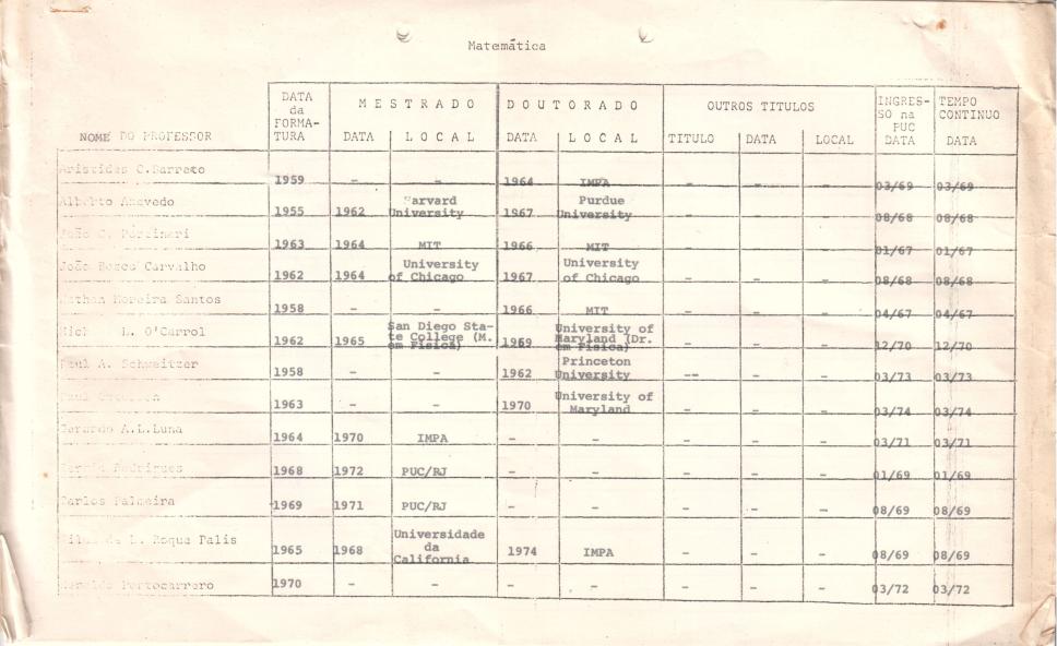 Lista de professores do Departamento de Matemática, com a sua titulação.