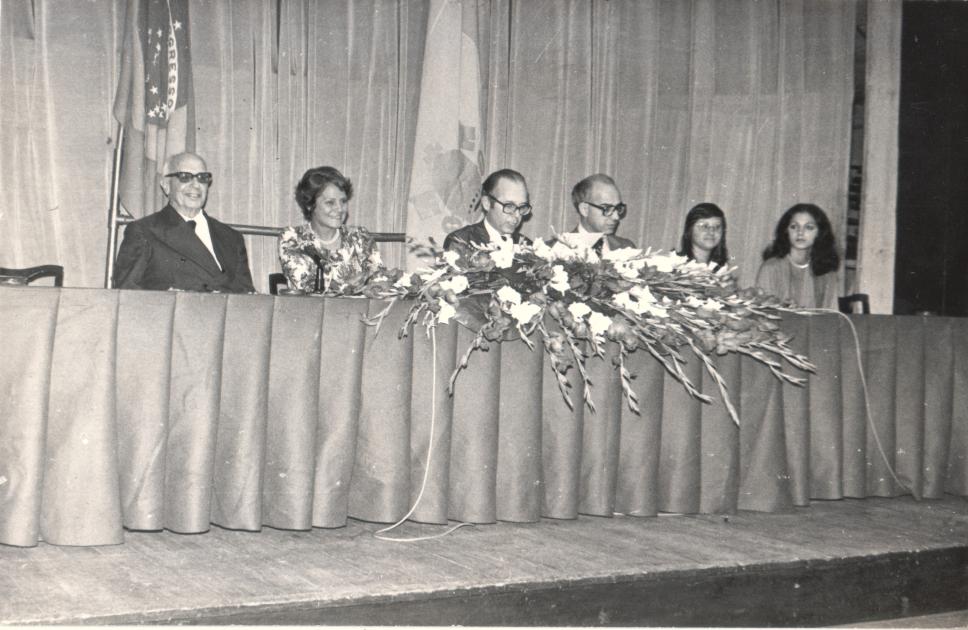 Mesa com autoridades em evento não identificado (talvez formatura).