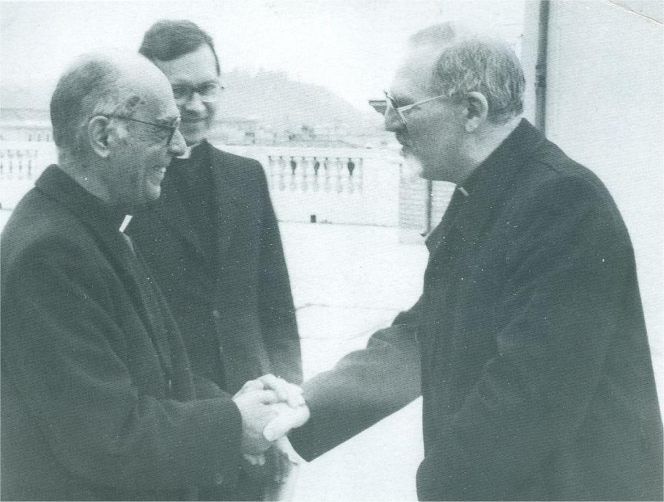 Padre Ávila, Padre José Souza Mendes S.J. e o Superior geral da Companhia de Jesus Padre Peter-Hans Kolvenbach S.J., em Roma. Revista PUC Ciência nº 7, 1995, p.