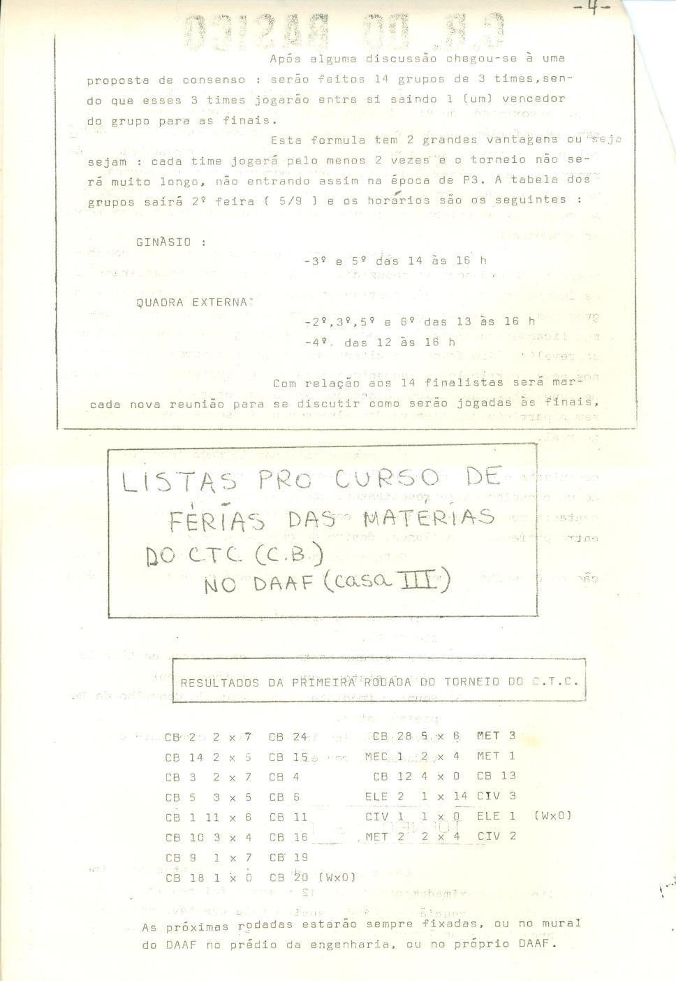 página 04. Sem número. Publicado em agosto. Torneio de Futebol. Cursos de férias.