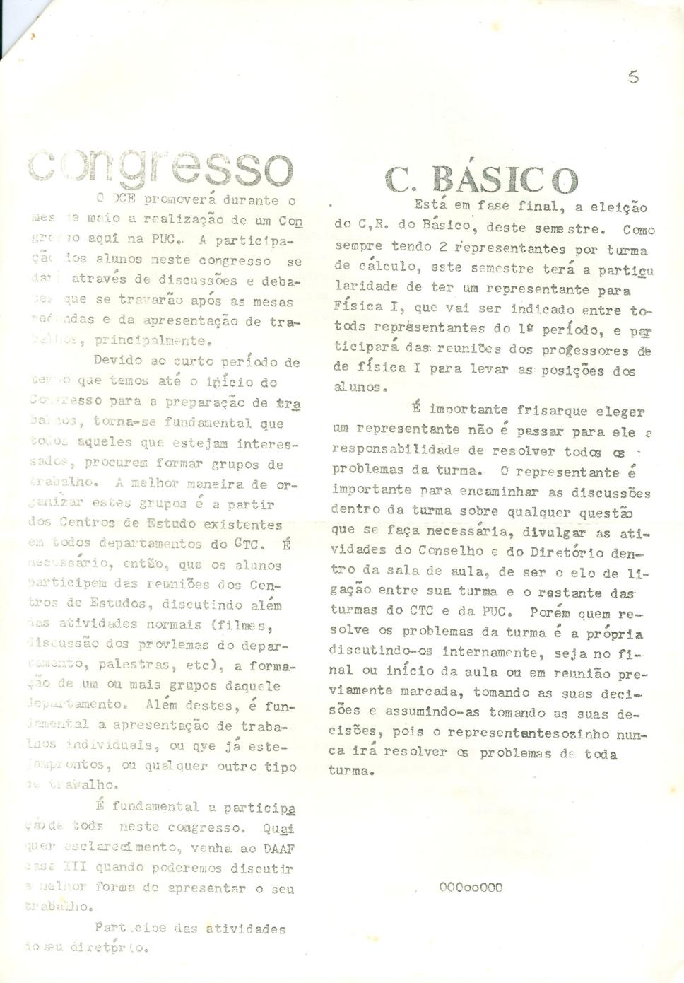 Sem número. Aviso sobre um Congresso que estava sendo promovido pelo DCE. Lembrete para que os alunos do Ciclo Básico elegessem seus representantes.