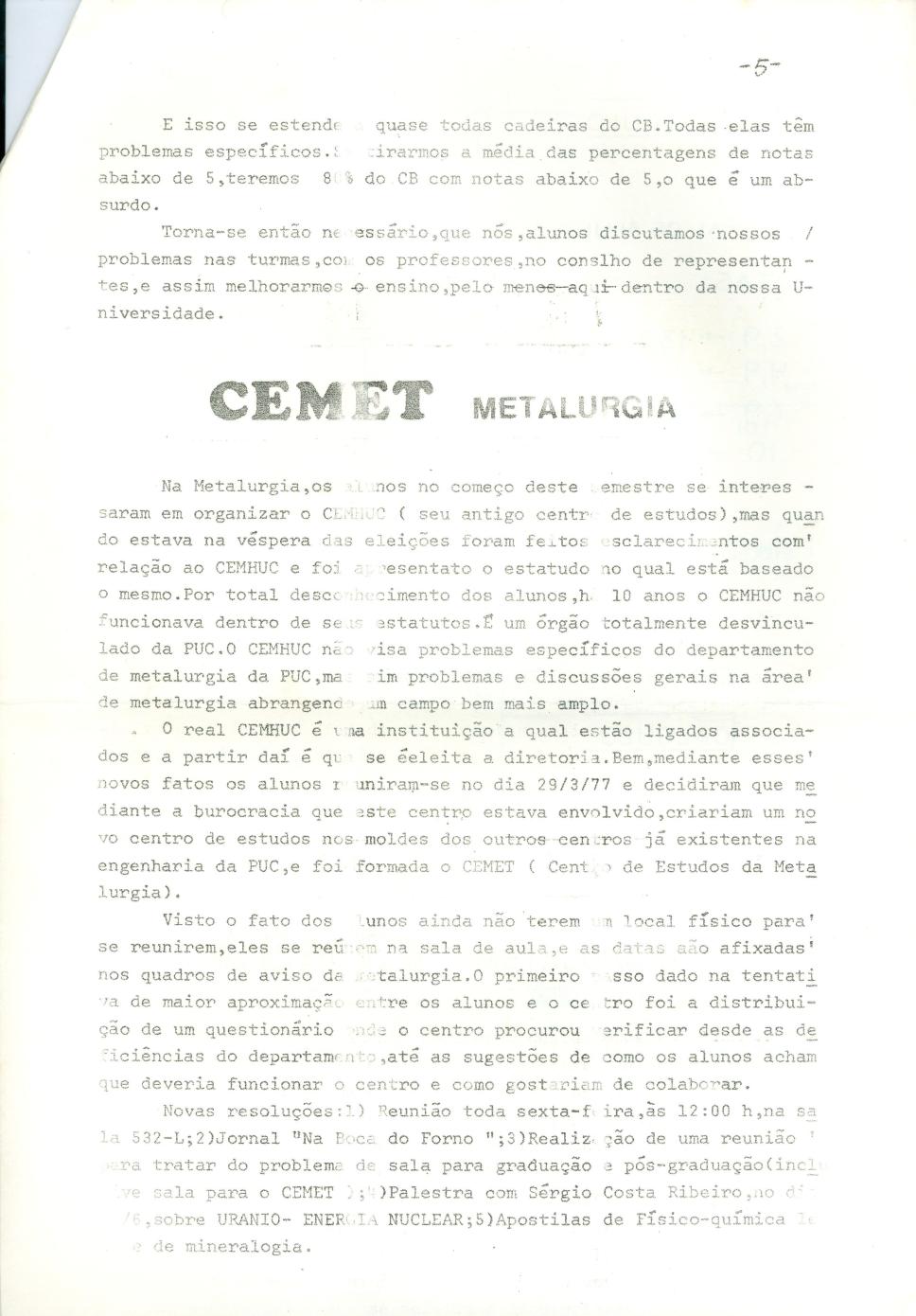 página 05. CEMET Matalurgia. CEMET (Centro de Estudos da Metalurgia).