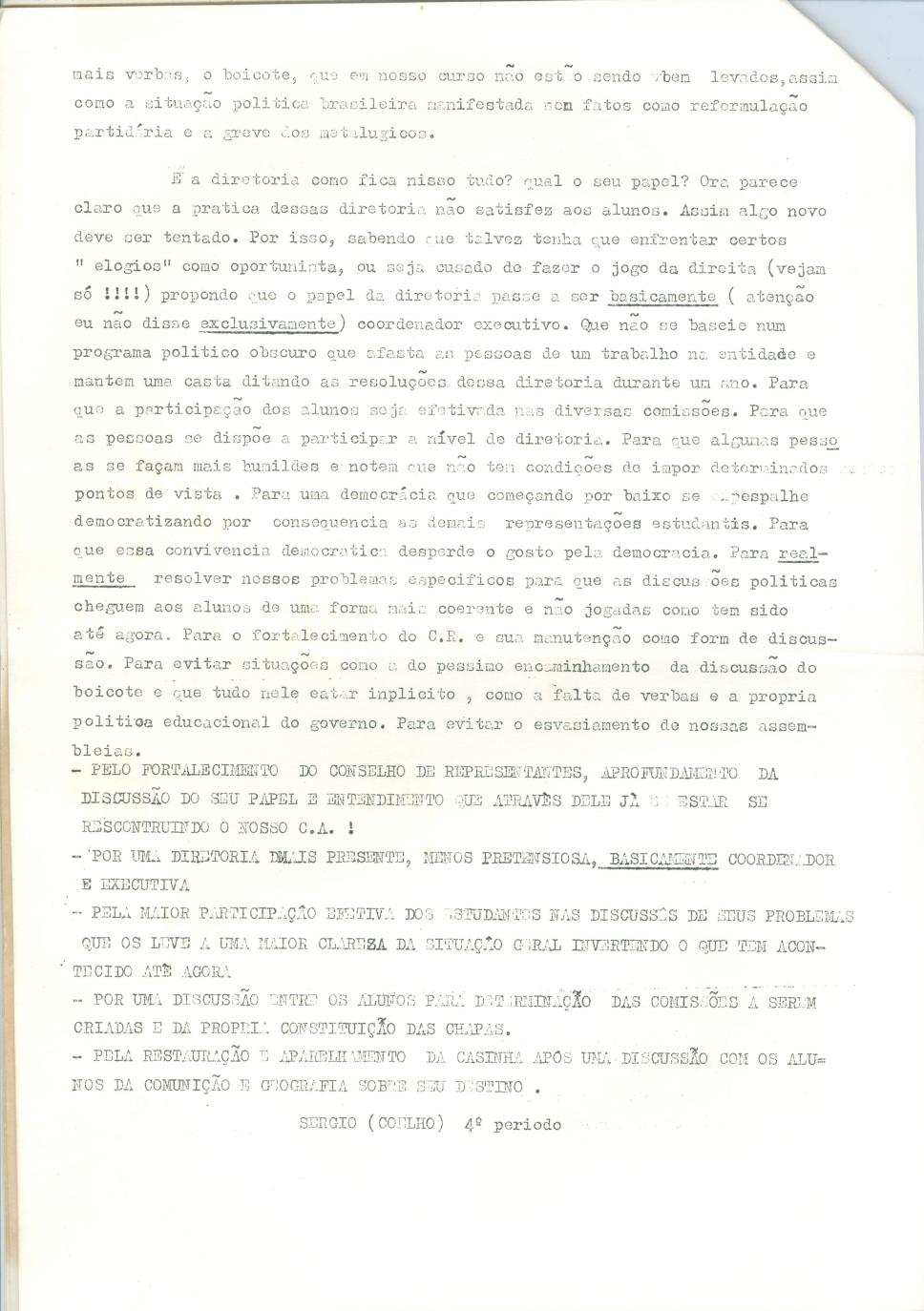 Página 02. "Por uma mudança de mentalidade". Análise da atuação do CA (História? Geografia?). Lista de reivindicações.