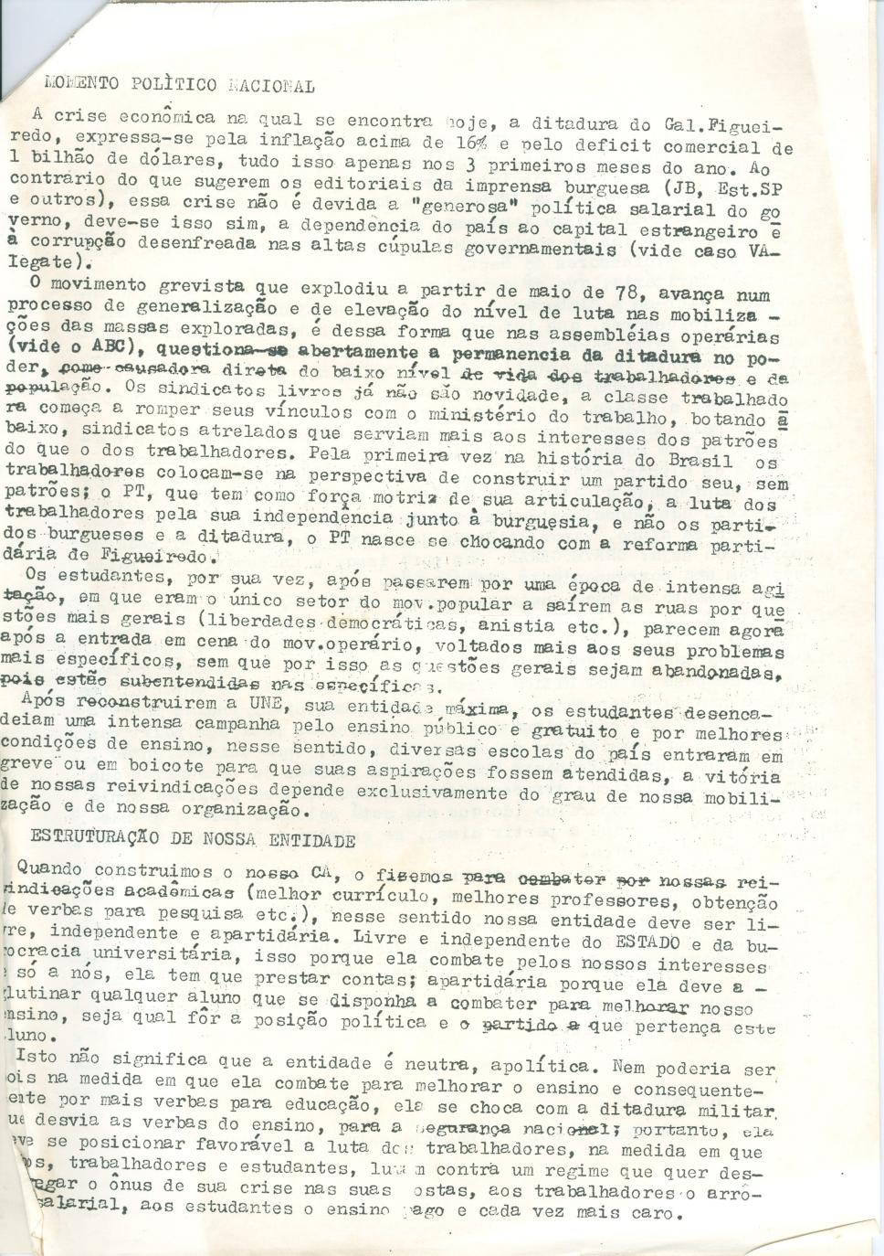 Momento Político Nacional / Estruturação de Nossa Entidade