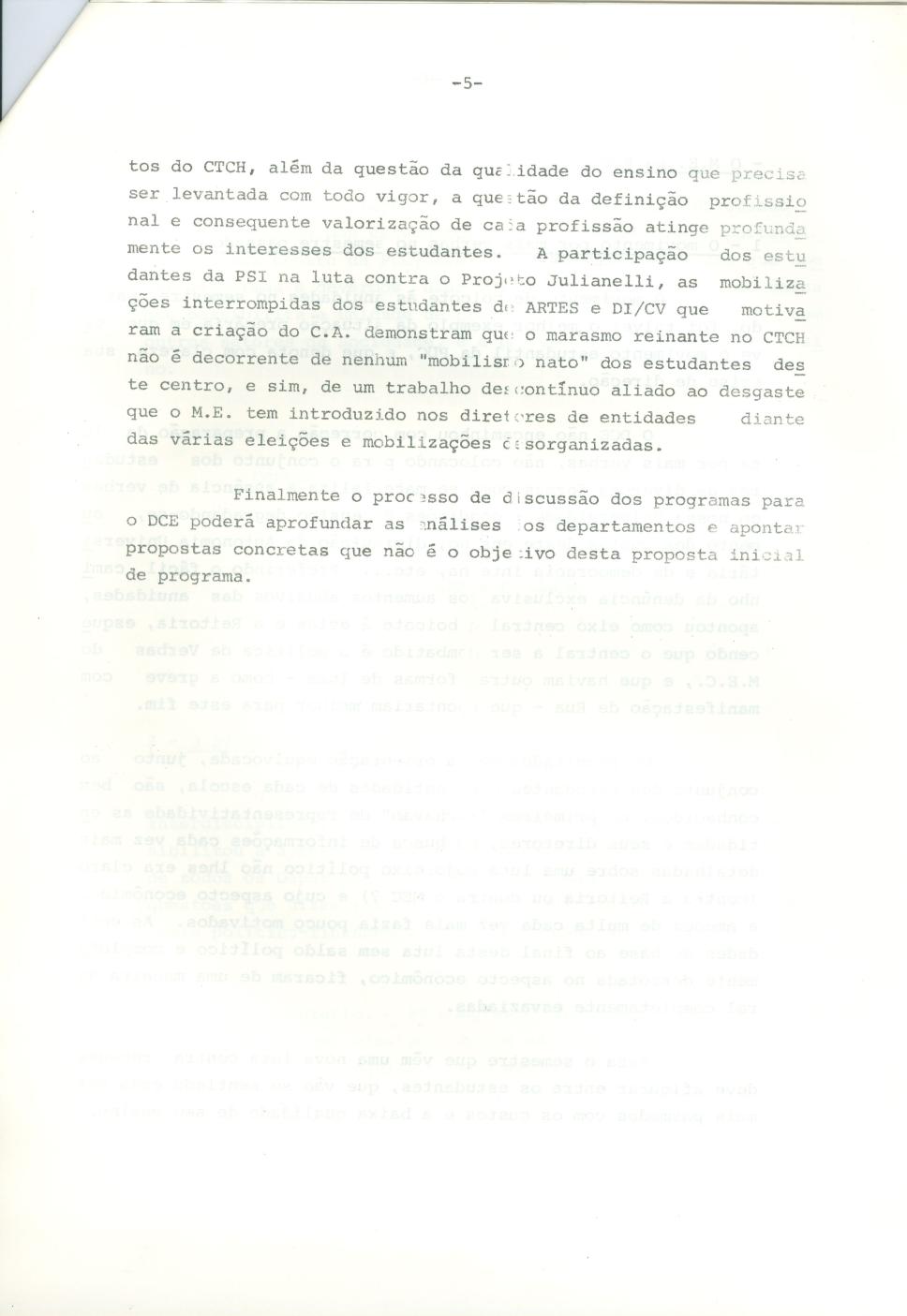 Página 05. Meio de discussão sobre o DCE. Situação do CCS, departamentos do CTCH, Psicologia, Projeto Julianelli, Artes, DI/CV, CA.