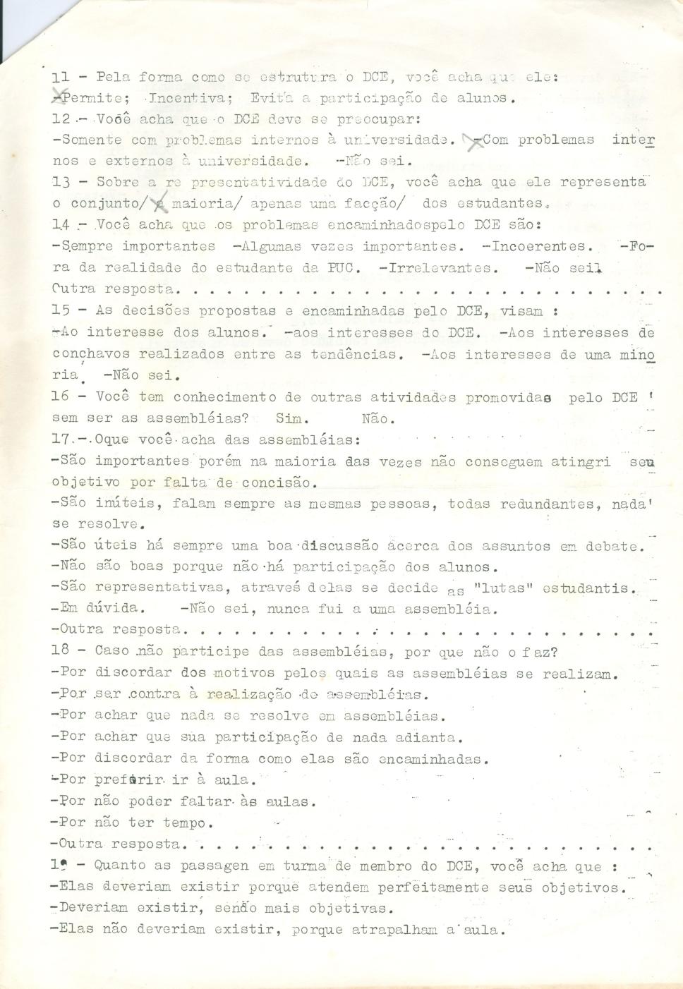 Pesquisa - ´A visão que o estudante da PUC/RJ tem do DCE como representação estudantil´