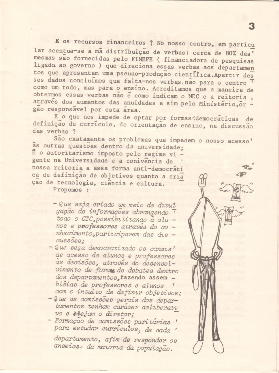Página 03. Publicação da chapa Unidade. Continuação do debate sobre o Departamento de Engenharia.