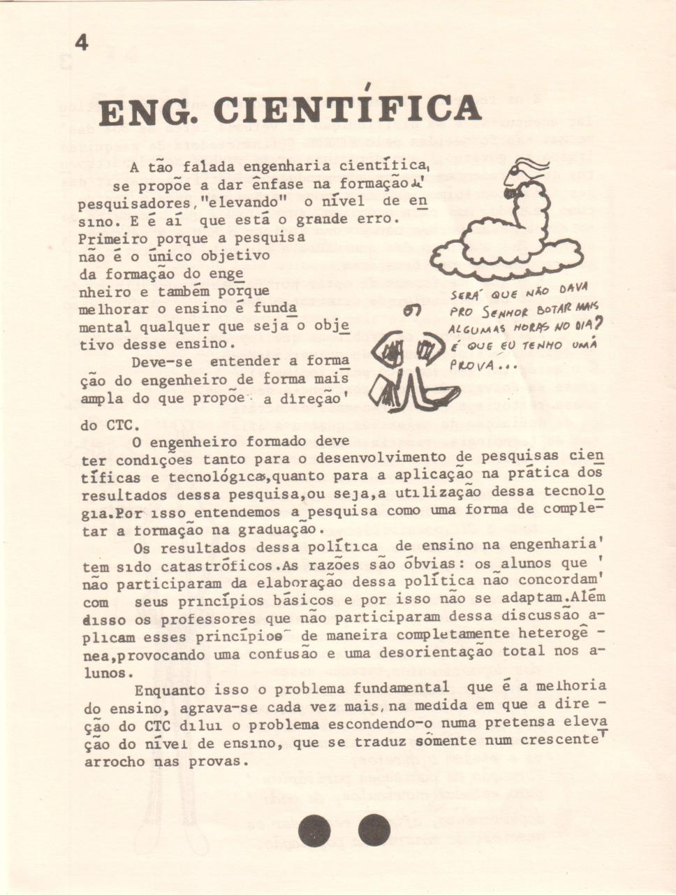 Página 04. Publicação da chapa Unidade. Introdução do debate sobre a Engenharia Científica.