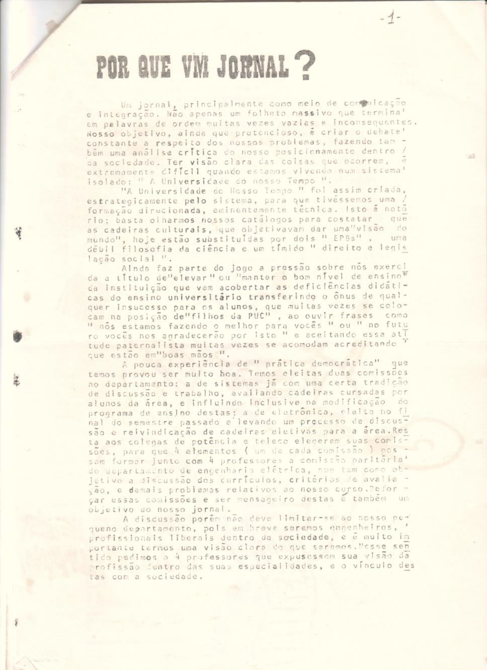 Coleção Acervo do professor Alfredo Jefferson relacionado ao DCE da PUC-Rio Código exclusivo jf0014_003 Data da criação Ano 1979 Data de criação Seg, 01/01/1979 - 12:00 Referente a Diretório Acadêmico Adhemar Fonseca - Engenharia (DAAF) Identificação Original Curto Circuito - o jornal da Elétrica Descrição Discussão sobre a situação da PUC-Rio e da prática democrática dentro da universidade.