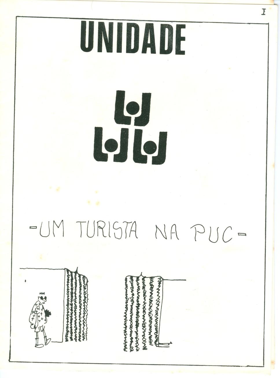 Página 01. Quadrinhos: 'Um turista na PUC'. Divulgação da chapa Unidade ao DCE.