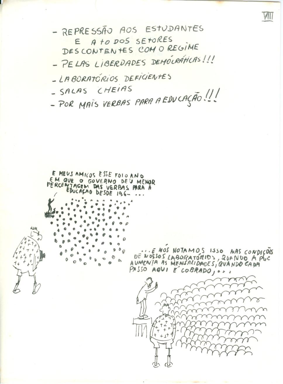 Página 08. Quadrinhos: 'Um turista na PUC'. Divulgação da chapa Unidade ao DCE.