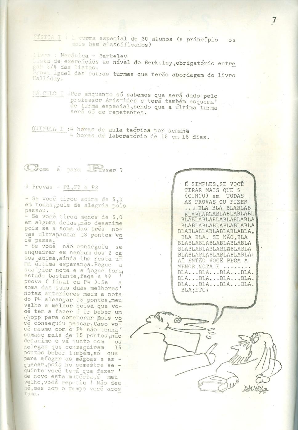 Página 07. Como é para passar? Provas e critérios. Charge.