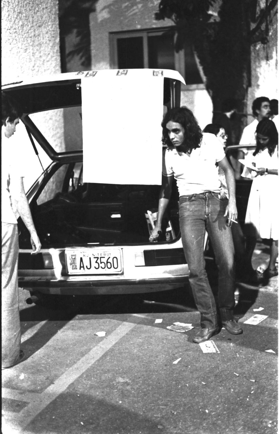 Carro com placa de Niterói, provavelmente transportando cédulas de cidades da região metropolitana para a apuração.