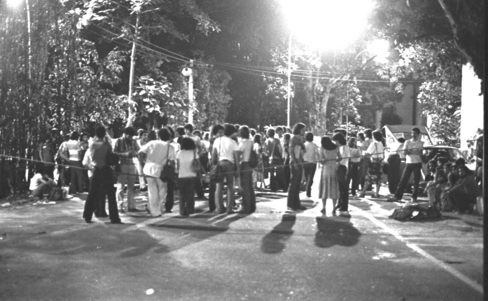 Estudantes aguardam o final da apuração em frente ao Ginásio.