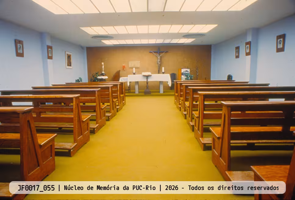 Antiga Capela, com o crucifixo em madeira e a primeira série de gravuras da via sacra de Carlos Oswald.