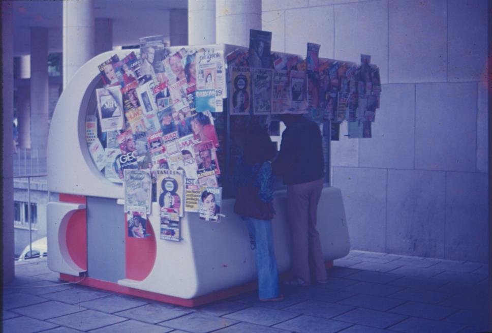 Banca de jornal que se localizava na entrada da Ala Frings. É possível datar a foto pelas capas do Pasquim e da Revista MAD.