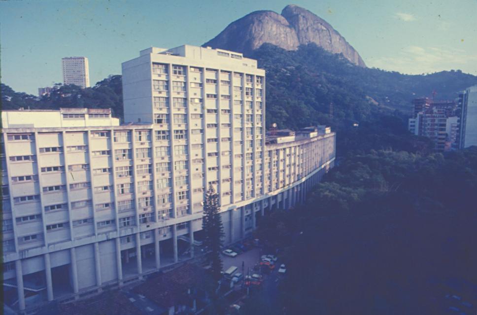 Fachada do Edifício Cardeal Leme, com o Morro Dois Irmãos ao fundo.