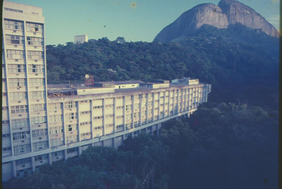 Fachada de parte do Edifício Cardeal Leme, com o Morro Dois Irmãos ao fundo.