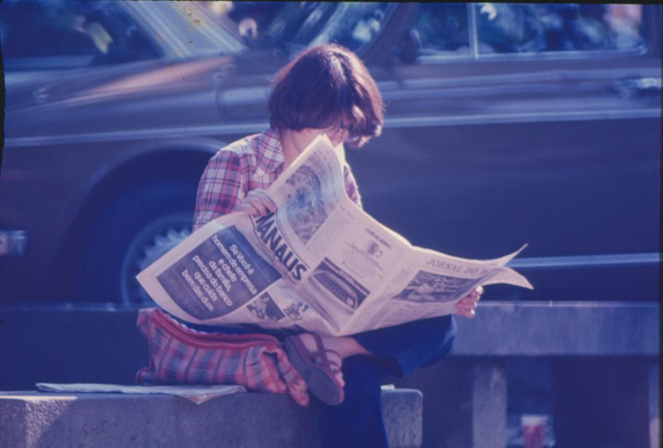 Moça lê o Jornal do Brasil.