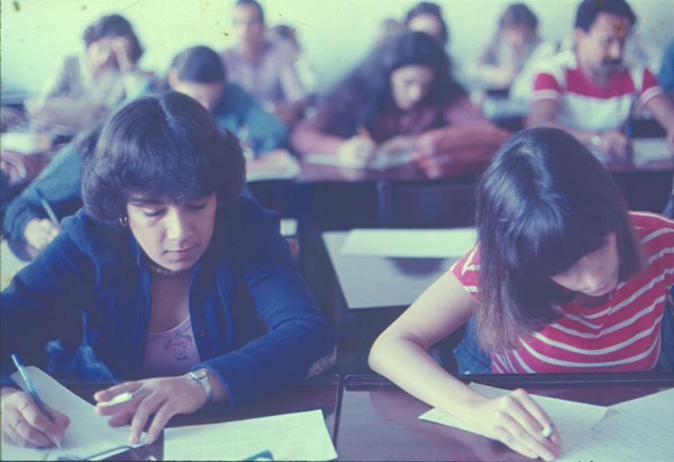 Sala de aula, aparentemente durante uma prova.