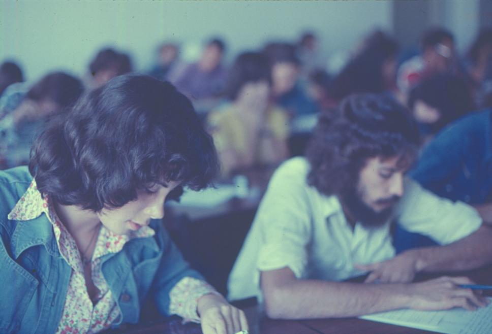 Sala de aula, aparentemente durante uma prova.