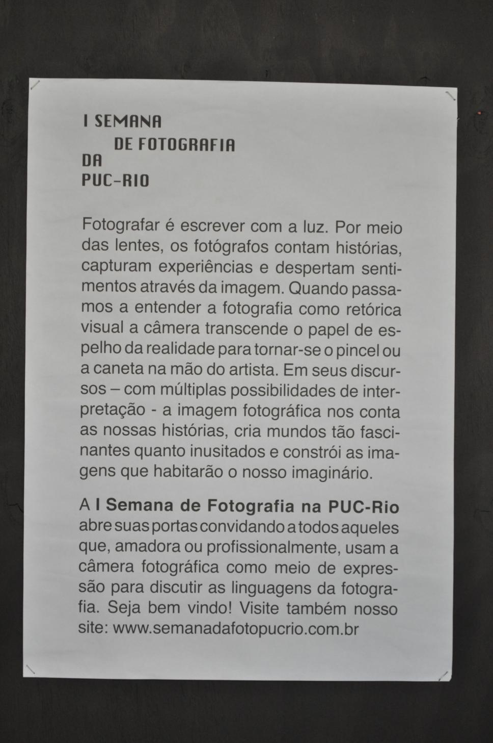 Texto de apresentação da I Semana de Fotografia da PUC-Rio.
