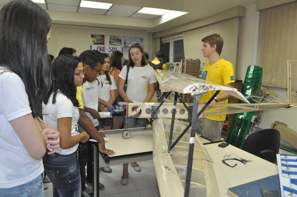 Visitantes no evento PUC por Um Dia, no Laboratório de Introdução à Engenharia.