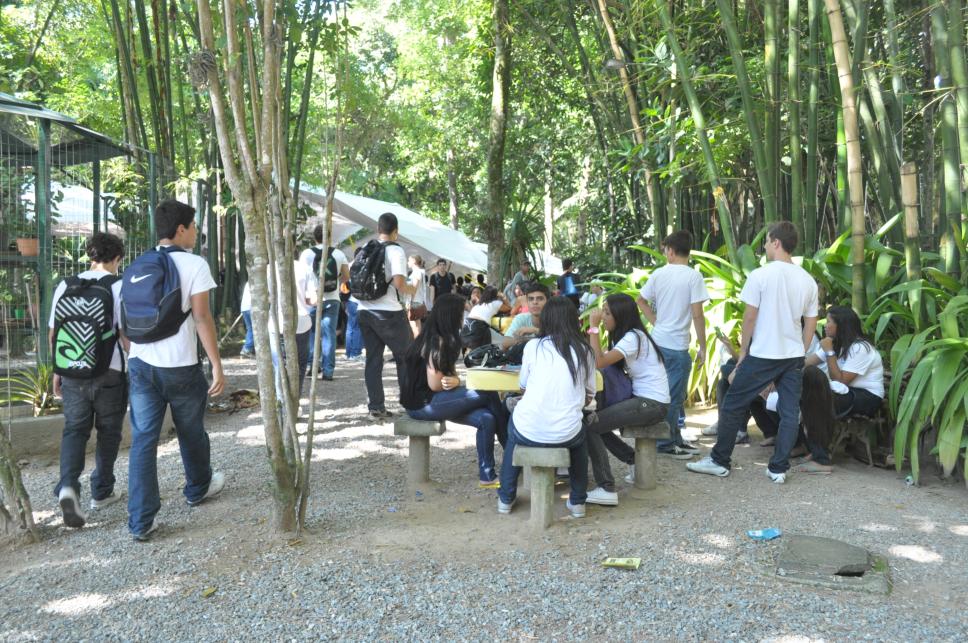 Estudantes no evento PUC por um Dia, próximos ao antigo espaço das araras.