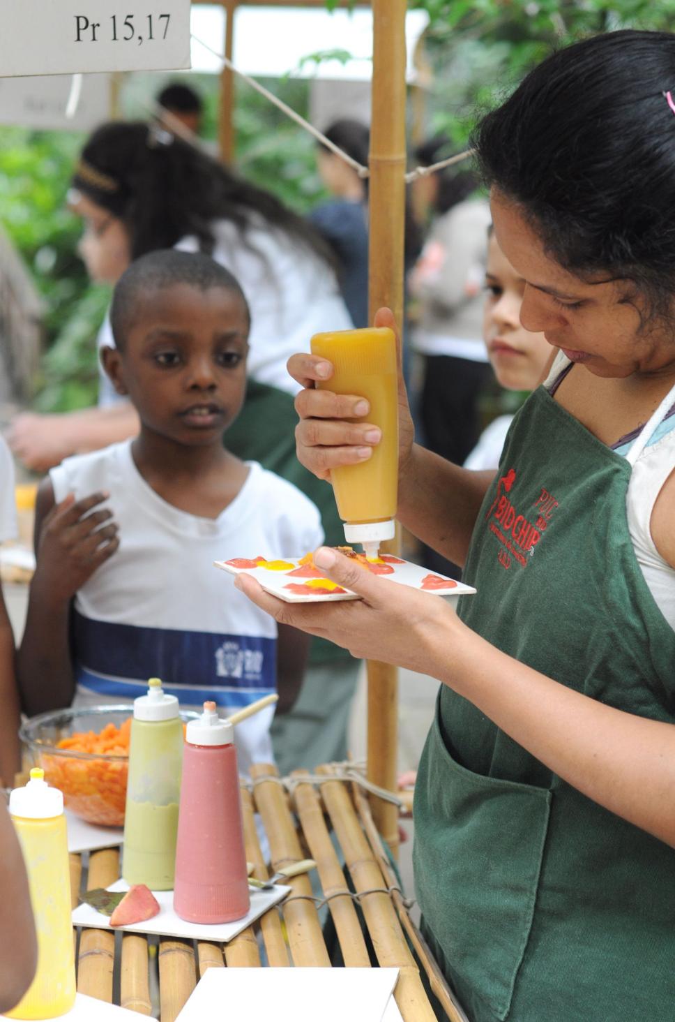 Aluno de Rede Municipal de Ensino aguarda para experimentar alimentos em atividade realizada no projeto Convivência com o BioChip.