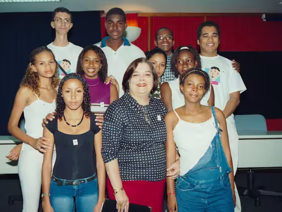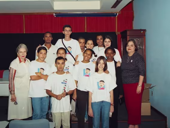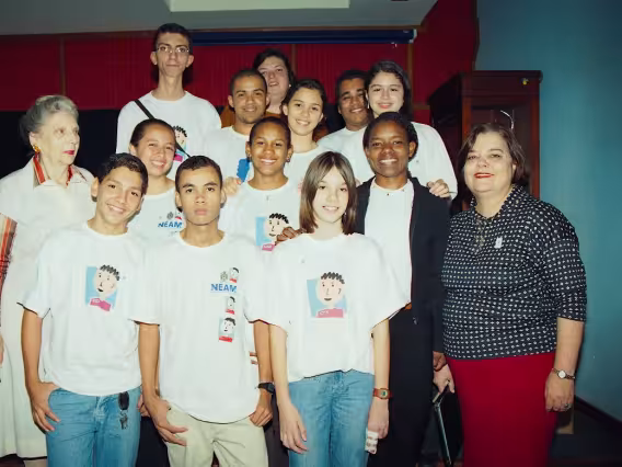 Imagens de jovens do Neam ao lado de Marina Moreira.