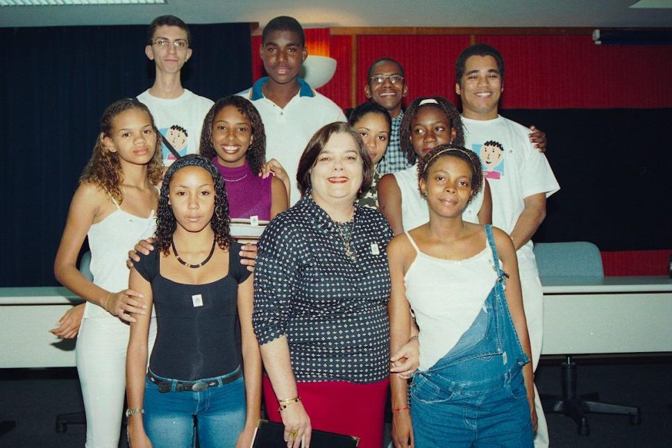 Alunos da Rede Pública ao lado da professora Marina Moreira.