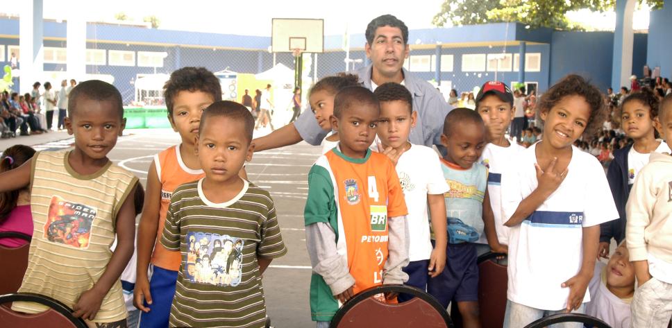 O professor Roosevelt Fideles com alunos de escola municipal participantes do projeto Jornadas Ecológicas.