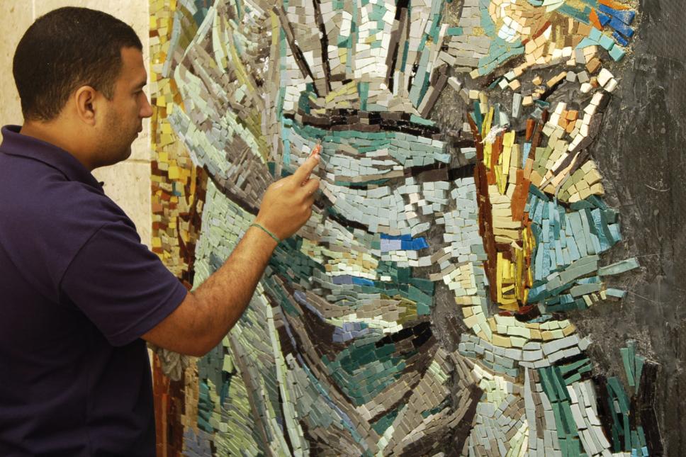 O mosaico, obra da artista plástica Isabel Ruas, é uma reprodução de um quadro de Cândido Portinari.