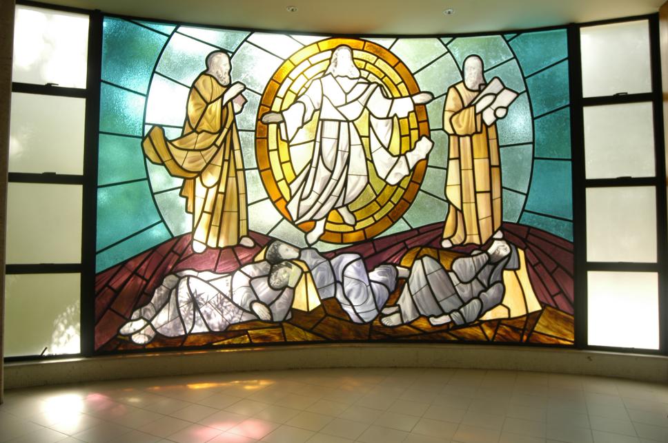Vitral que reproduz o quadro Transfiguração, de Candido Portinari.