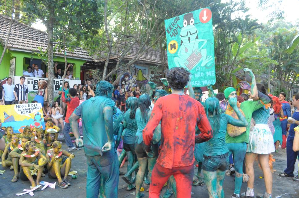 Alunos pintados participam de trote.