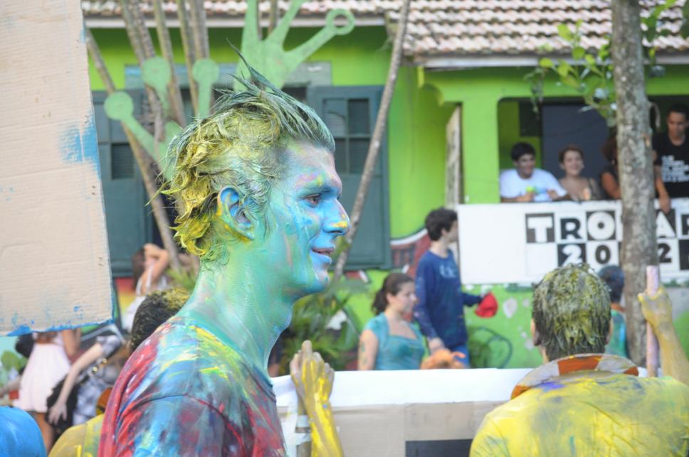 Aluno pintado em trote.