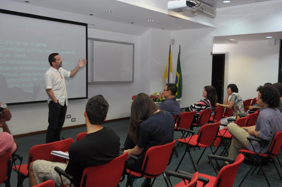 Palestra sobre intercâmbio na Espanha durante o evento.