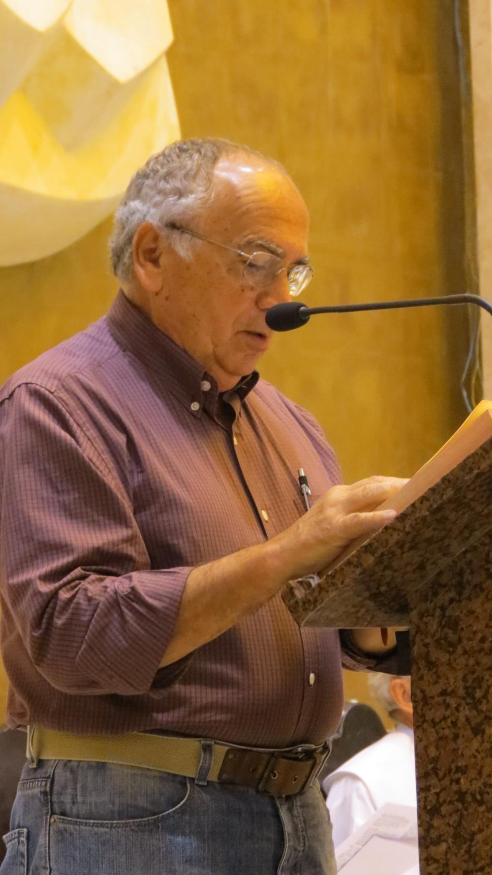 Professor Augusto Sampaio no púlpito.