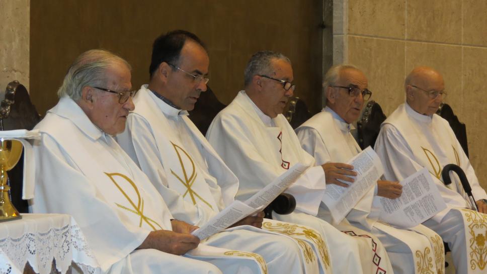 Da esq. para dir.: 1° prof. pe. Jesús Hortal Sànchez S.J. (TEO), 2° prof. pe. Luís Corrêa Lima S.J. (TEO), 3° prof. pe. Josafá Carlos de Siqueira S.J. (BIO, Reitor), 4° prof. pe. Pedro Magalhães Guimarães Ferreira S.J. (ELE), 5°prof. pe. Amarilho Checon S.J.
