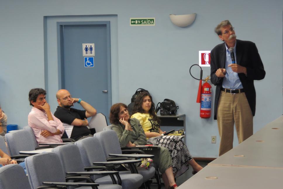 Plateia observa a palestra do cientista Philip Fearnside.