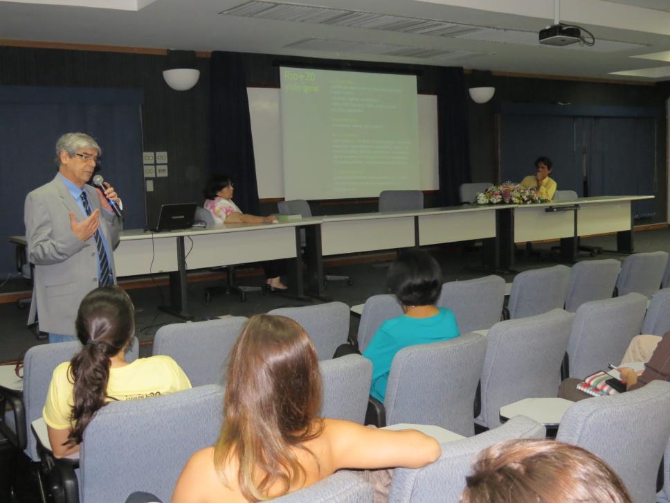 Professor Fernando Walcacer durante a mesa de abertura que abordou o panorama geral da Rio+20 e as propostas da Semana de Meio Ambiente.