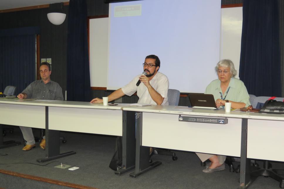 Da esq. para dir.: 1° Álvaro Henrique de Souza Ferreira (GEO), 2° prof. Claudio Rezende Ribeiro (UFRJ), 3° Sônia Rabello (vereadora).